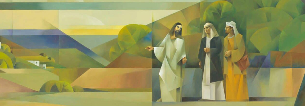 Aquel mismo día (el primero de la semana), dos de los discípulos de Jesús iban caminando a una aldea llamada Emaús, distante de Jerusalén unos sesenta estadios; iban conversando entre ellos de todo lo que había sucedido. Mientras conversaban y discutían, Jesús en persona se acercó y se puso a caminar con ellos. Pero sus ojos no eran capaces de reconocerlo.